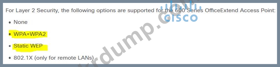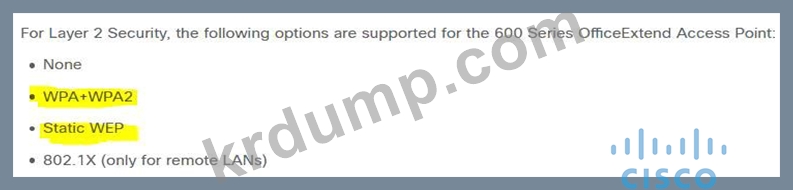 엔지니어는 Cisco Aironet 600 Series OfficeExtend AP를 지원하도록 Cisco WLC를 구성해야 합니다. 이 환경에서 지원되는 두 가지 Layer 2 보안 옵션은 무엇입니까? (2개를 선택하세요.)