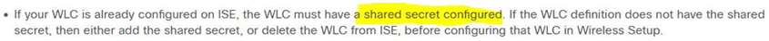Cisco WLC가 네트워크 및 Cisco ISE에 네트워크 장치로 추가되었지만 인증이 실패합니다.