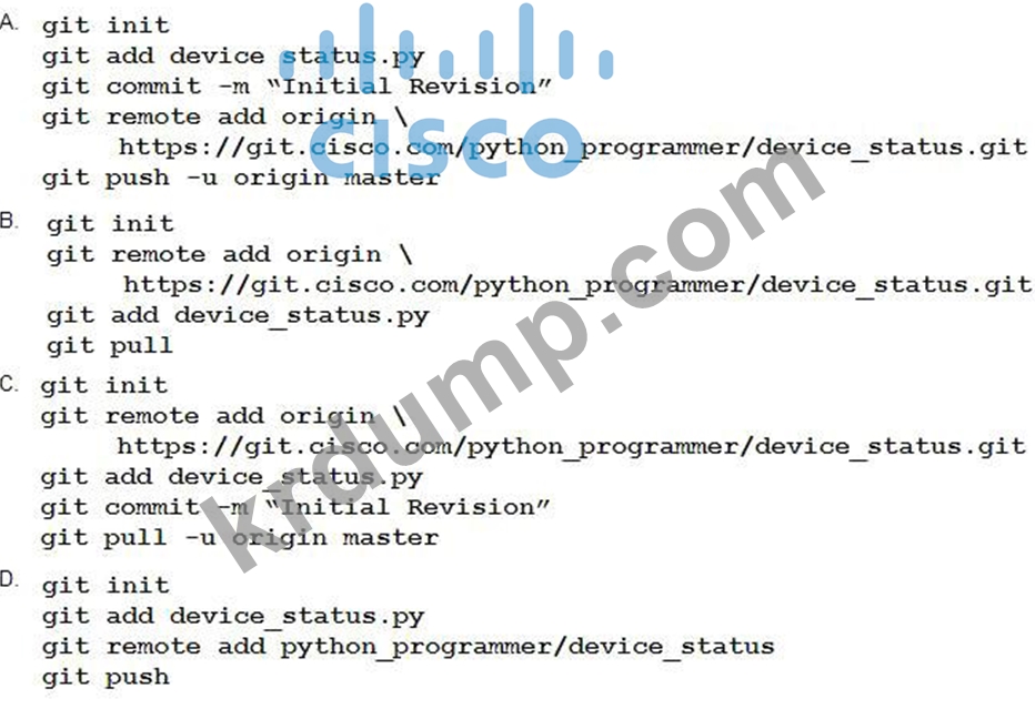 "device_status"라는 새 프로젝트는 "device_status.py"라는 이름의 첫 번째 파일과 함께 "device_status"라는 중앙 Git 저장소에 저장해야 합니다. Git 저장소는 python_programmer 계정을 사용하여 생성됩니다.