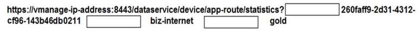 260faff9-2d31-4312-cf96-143b46db0211의 deviceId, biz-internet의 local-color, gold의 remote-color를 지정하는 Cisco SD_WAN vManage Statistics API에 대해 이 API 요청을 완료하려면 공백을 채우십시오.