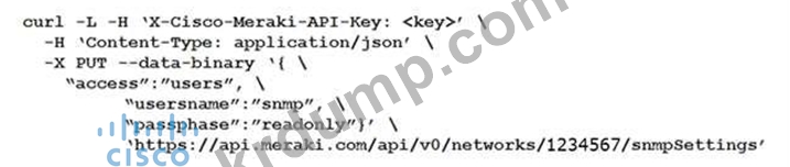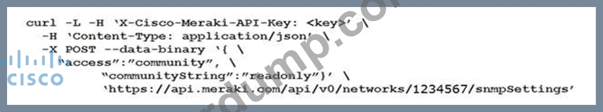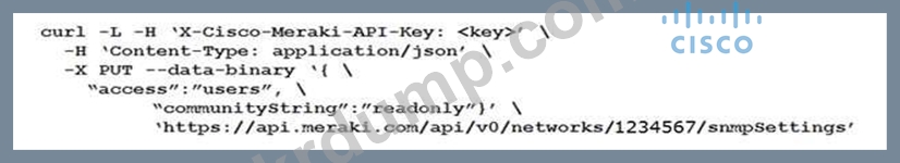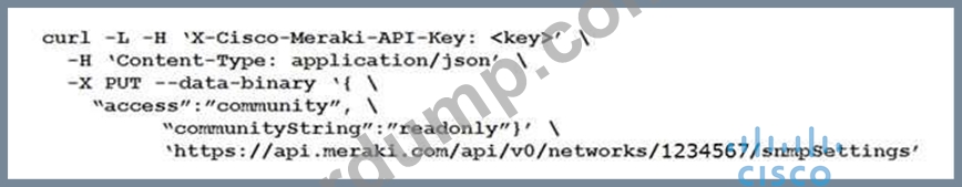 네트워크 ID "1234567"의 SNMP 커뮤니티를 읽기 전용으로 업데이트하는 데 사용되는 curl 명령은 무엇입니까?
