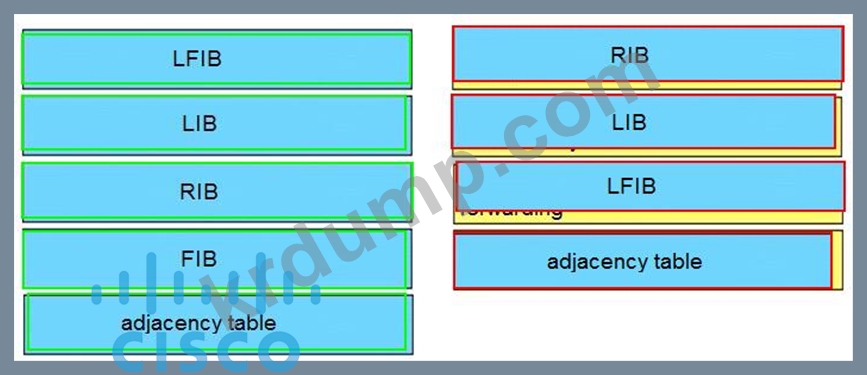 엔지니어가 MPLS VPN 서비스 제공업체 네트워크에서 종단 간 고객 트래픽 문제를 해결하고 있습니다. 엔지니어는 라우팅 문제를 해결하기 위해 어떤 작업을 사용해야 합니까? 왼쪽의 테이블 유형을 오른쪽의 가장 유용한 문제 해결 작업/라우터 유형으로 끌어다 놓습니다. (모든 옵션이 사용되는 것은 아닙니다.)