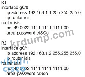 이러한 구성을 라우터 R1 및 R2에 적용한 후 두 장치는 인접 관계를 형성할 수 없습니다. 가장 가능성이 높은 문제의 이유는 무엇입니까?