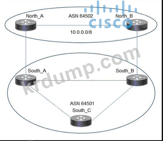 나 전시를 참조하십시오. 네트워크 엔지니어는 여러 자율 시스템이 ASN 64501에 연결되는 멀티호밍 eBGP 토폴로지를 설정합니다.