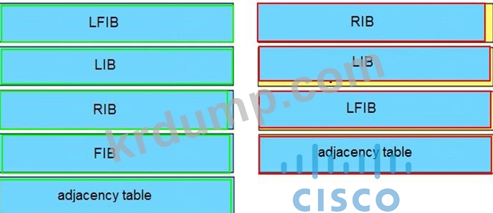엔지니어가 MPLS VPN 서비스 제공업체 네트워크에서 종단 간 고객 트래픽 문제를 해결하고 있습니다. 엔지니어는 라우팅 문제를 해결하기 위해 어떤 작업을 사용해야 합니까? 왼쪽에서 테이블 유형을 가장 유용한 문제 해결 작업/라우터 유형으로 끌어다 놓습니다. (모든 옵션이 사용되는 것은 아닙니다.)