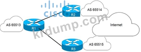엔지니어가 BGP 피어링 문제를 성공적으로 해결했습니다. R1은 R2 및 R3와 eBGP 피어링을 구축했습니다. 트래픽을 올바르게 제어하려면 엔지니어가 어떤 메커니즘을 적용해야 합니까?
