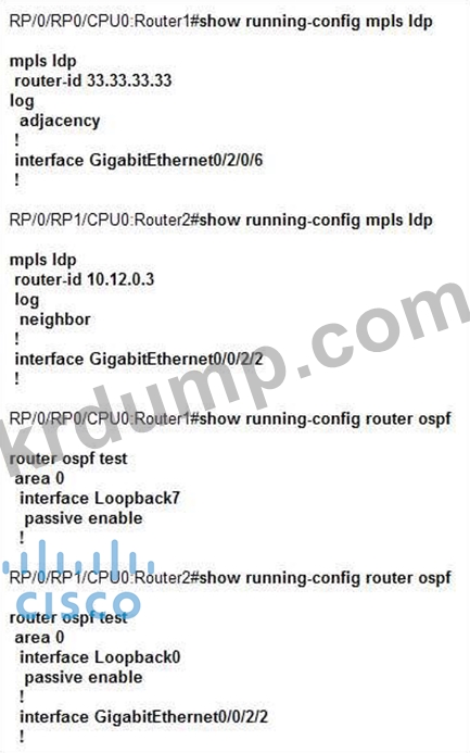 기가비트 이더넷 링크를 통해 서로 연결된 두 대의 라우터가 있습니다. 라우터 1의 "show mpls ldp neighbor" 명령 출력에 라우터 2와의 LDP 피어링이 표시되지 않는 경우, LDP 피어링 문제의 근본 원인은 무엇일까요?