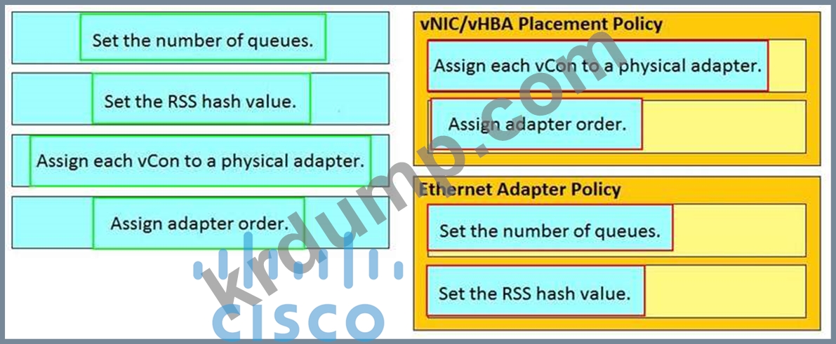 최종 사용자는 새로 설치된 VM(가상 머신)과 스토리지 어레이 간의 데이터 저장소 연결 가능성 문제를 보고합니다. VM은 FCoE VLAN을 통해 Cisco Nexus 5672UP 스위치와 직접 연결된 Cisco C-Series 서버에 배포됩니다. 기본 VLAN으로 지정된 VLAN 99의 데이터 트래픽은 기본 게이트웨이에 도달하지만 FCoE VLAN 99는 데이터 저장소에 액세스하지 못합니다. 어떤 조치가 문제를 해결합니까?