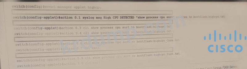 EEM 스크립트는 모든 VDC에 대해 Cisco Nexus 7000 시리즈 스위치에서 CPU 사용률이 높을 때 출력을 수집하기 위해 기본 VDC에 적용됩니다. 문제를 해결하려면 어떤 구성 집합을 스크립트에 추가해야 합니까?