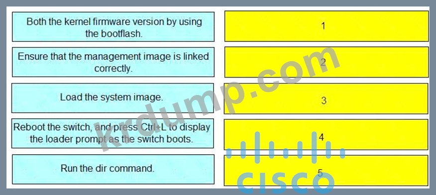 패브릭 인터커넥트의 펌웨어 업그레이드가 실패합니다. 부트플래시에 유효한 이미지가 포함되어 있습니다. 왼쪽에서 오른쪽의 올바른 순서로 복구 단계를 끌어다 놓습니다.