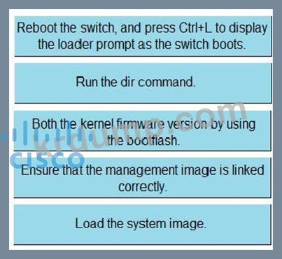패브릭 인터커넥트의 펌웨어 업그레이드가 실패합니다. 부트플래시에 유효한 이미지가 포함되어 있습니다. 왼쪽에서 오른쪽의 올바른 순서로 복구 단계를 끌어다 놓습니다.