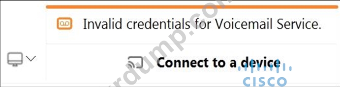 Jabber 사용자는 음성 메일에 액세스할 수 없습니다. 문제 해결 중에 관리자가 이 스크린샷을 캡처합니다. 이 문제를 해결하는 두 가지 방법은 무엇입니까? (2개를 선택하세요.)
