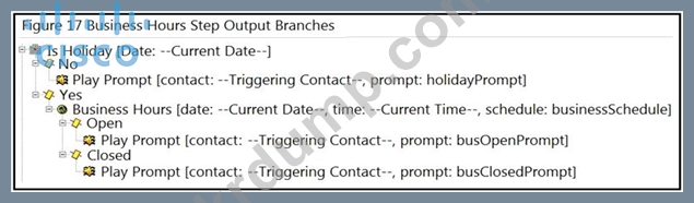관리자가 Cisco UCME에 대한 Cisco Unity Express 통합을 위해 자동 교환 스크립트를 구성하고 있으며 휴일이 아닐 때 "busOpenPrompt" 웨이브 파일을 재생하려고 합니다. 이 목표를 달성하려면 스크립트를 어떻게 구성해야 합니까?