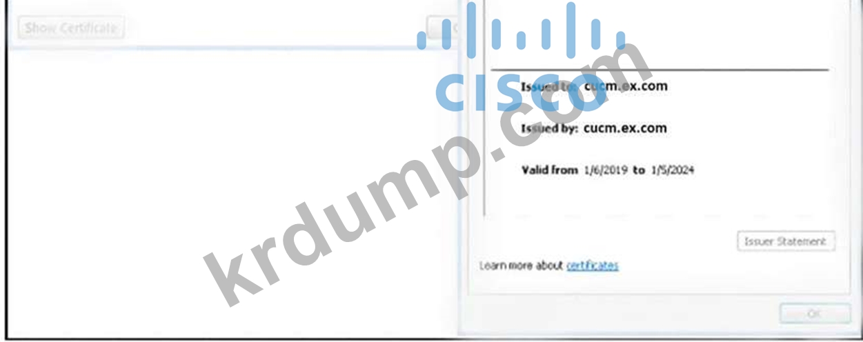 내부 Jabber 로그인 문제를 해결할 때 인증서 오류에 대한 팝업이 표시되고 로그인이 실패합니다. Cisco UCM의 FQDN은 cucm.ex.com입니다. IM and Presence 서버의 FODN은 imp.ex.com입니다. 이 문제를 해결하려면 어떤 두 가지 조치를 취해야 합니까? (2개를 선택하세요.)
