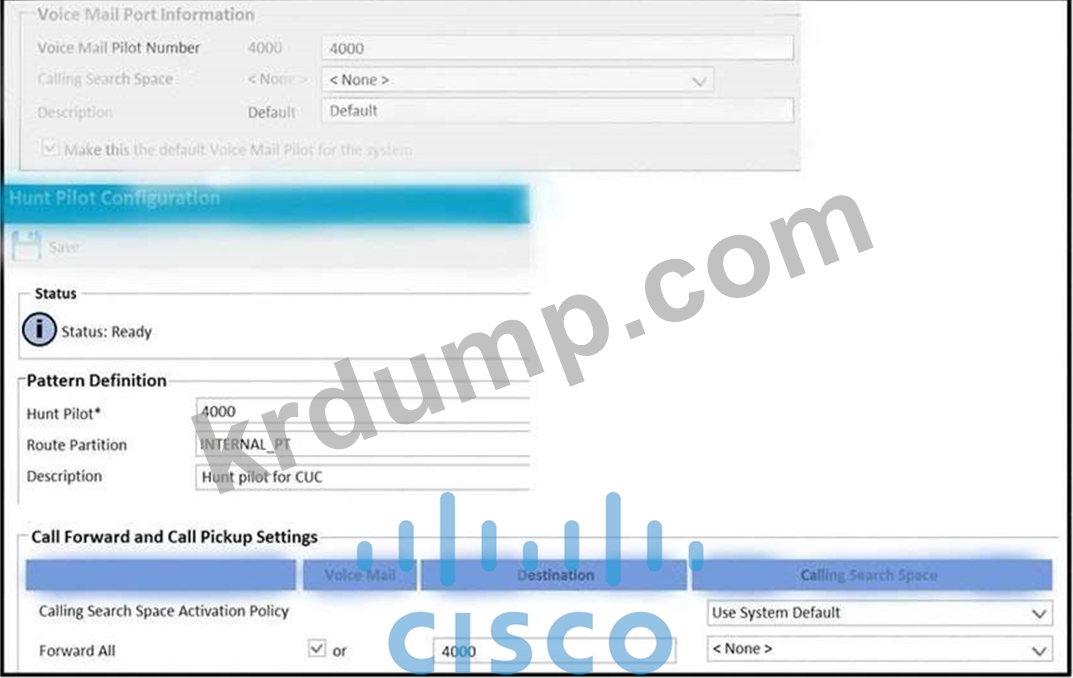 Cisco Unity Connection 및 Cisco Unified Communications Manager는 SCCP를 사용하여 통합됩니다. 음성 메일 포트가 등록됩니다. 사용자는 음성 메일로 전달될 때 통화가 실패했다고 보고합니다. 문제의 원인은 무엇입니까?
