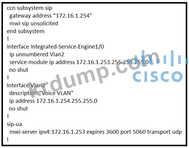 협업 엔지니어는 Cisco Unity Express를 Cisco Unified Communications Manager Express와 통합하고 MWI 기능을 실험하고 있습니다. 현재 구성에서는 새 메시지를 남길 때나 새 메시지를 재생한 후에 MWI가 변경되지 않습니다. 구성을 수정하려면 어떤 두 가지 변경이 필요합니까? (2개를 선택하세요.)