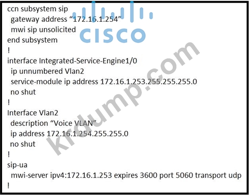 협업 엔지니어는 Cisco Unity Express를 Cisco Unified Communications Manager Express와 통합하고 MWI 기능을 실험하고 있습니다. 현재 구성에서는 새 메시지를 남길 때나 새 메시지를 재생한 후에 MWI가 변경되지 않습니다. 구성을 수정하려면 어떤 두 가지 변경이 필요합니까? (2개를 선택하세요.)