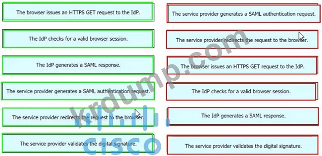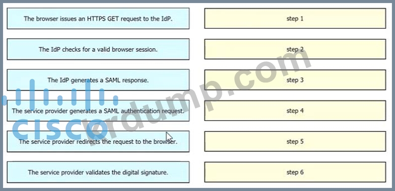 SAML SSO 프로세스의 단계를 왼쪽에서 오른쪽 순서로 끌어다 놓습니다.