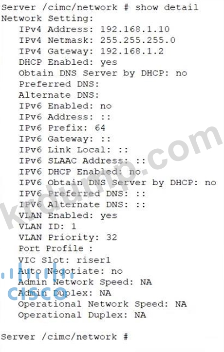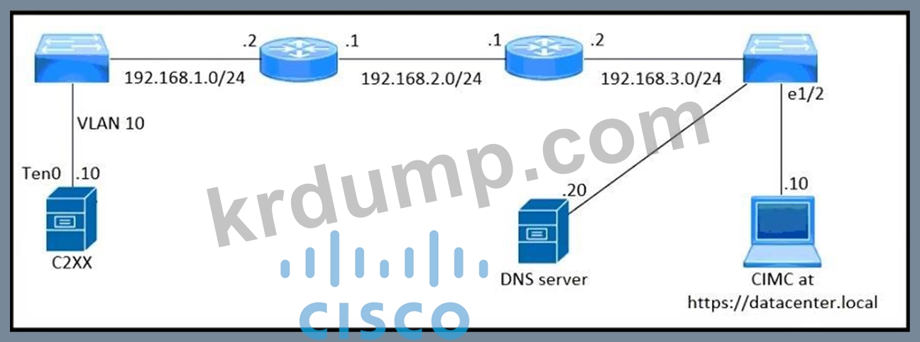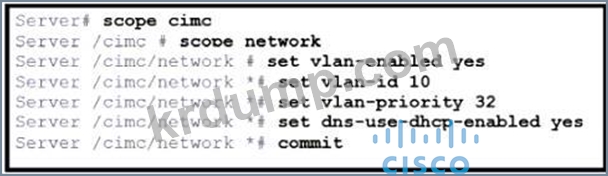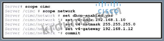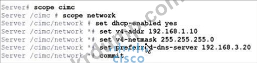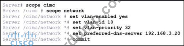 그림을 참조하십시오. 엔지니어는 Cisco IMC에 대한 접근 권한을 설정해야 합니다. https://datacenter 로컬 웹 페이지에 로그인하여 접근 권한을 허용해야 합니다. 제시된 구성은 Cisco UCS C240 시리즈 서버에서 실행됩니다. 구성을 완료하는 명령 세트는 무엇입니까?