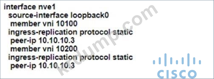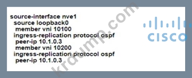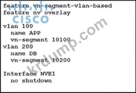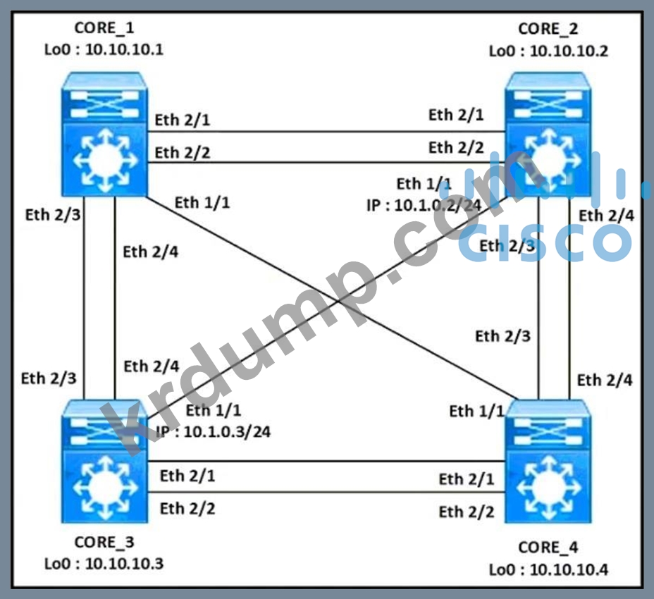 그림을 참조하십시오. 네트워크 엔지니어는 CORE_2와 CORE_3이라는 두 코어 스위치 간에 VXLAN을 구현해야 합니다. 코어 스위치는 멀티캐스트를 비활성화해야 합니다. 또한, APP라는 VLAN 100과 DB라는 VLAN 200을 코어 스위치 간에 확장해야 합니다.