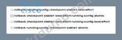 네트워크 엔지니어는 Cisco Nexus 5000 시리즈 스위치의 실행 중인 구성을 "stable1"이라는 기존 스냅샷으로 복원해야 합니다. 복원 절차는 오류가 발생하지 않는 경우에만 진행되어야 합니다. 이 목표를 달성하려면 어떤 구성을 사용해야 합니까?