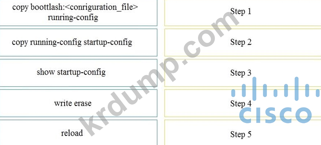 엔지니어는 부트플래시에 백업된 이전 버전의 Cisco MDS 9000 시리즈 스위치 구성을 복구한 다음 복원을 검증해야 합니다.