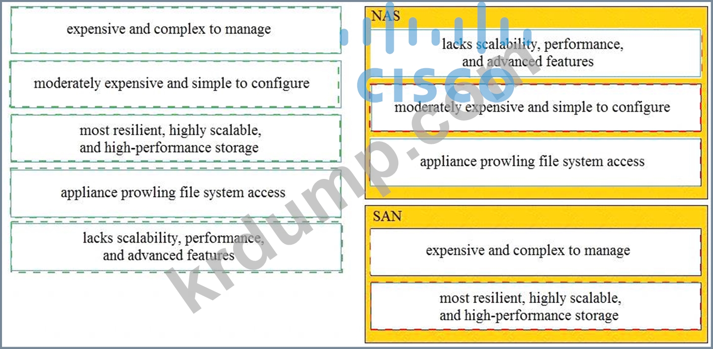 왼쪽의 특성을 오른쪽의 올바른 스토리지 시스템으로 끌어다 놓으세요.