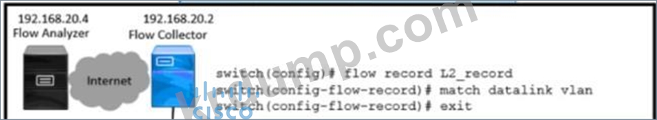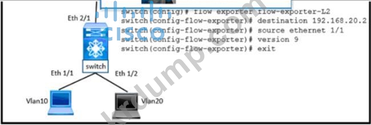 그림을 참조하십시오. VLAN 10에서 트래픽이 스위치를 통해 전달될 때 지연 및 패킷 손실이 발생합니다. 대상 흐름 분석기는 30초 이하의 트래픽 캡처를 허용합니다. 요구 사항을 충족하는 트래픽 캡처를 구현하는 구성은 무엇입니까?