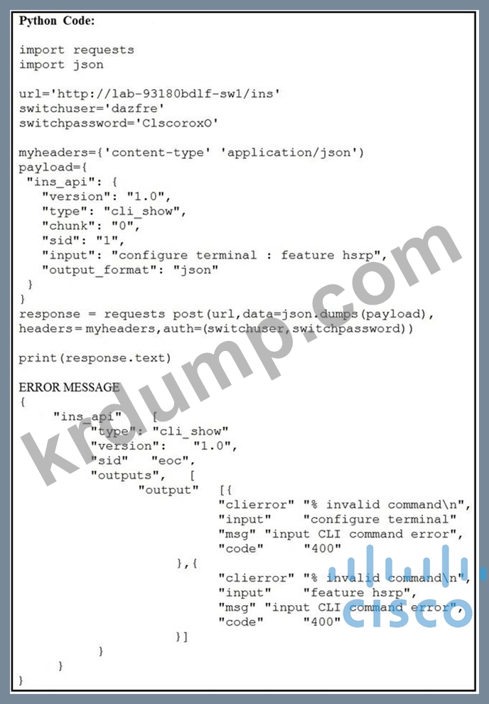Cisco NX-API의 Python 코드가 오류 메시지를 출력하는 이유는 무엇입니까?