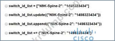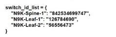 'NSK-Spine-2': '1498323434' 요소를 switch_id 목록 사전에 추가하려면 어떤 명령을 사용해야 합니까?
