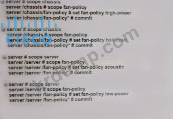 네트워크 엔지니어는 Cisco UCS C-Series 랙 서버의 냉각 요구 사항을 파악해야 합니다. PCIe 카드가 장착된 서버에는 팬 구성 정책이 설정되어 있습니다. 서버의 팬 정책에 어떤 구성을 사용해야 합니까?