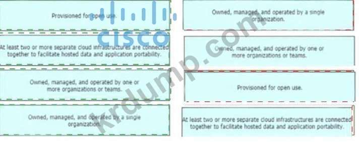 네트워크 엔지니어가 클라우드 인프라 모델을 운영 및 리소스 접근 관점에서 설명하도록 요청받았습니다. 왼쪽에서 해당 설명을 끌어다 놓으세요.
