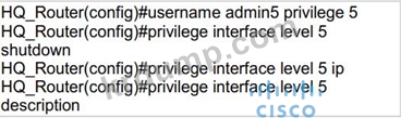 네트워크 관리자는 admin5 사용자에 대한 명령 인증을 구성합니다. 이 구성 후에 admin5 사용자는 HQ_Router에서 무엇을 할 수 있습니까?