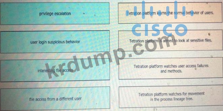 왼쪽에서 오른쪽의 올바른 정의로 Cisco Tetration 플랫폼에 대한 의심스러운 패턴을 끌어다 놓습니다.