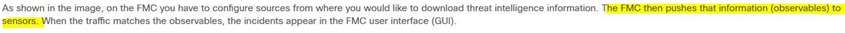 Cisco FMC가 다른 제품의 센서에서 관찰할 수 있는 보안 인텔리전스를 푸시할 수 있는 제품은 무엇입니까?