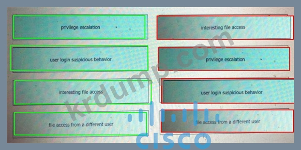 Cisco Tetration 플랫폼에 대한 의심스러운 패턴을 왼쪽에서 오른쪽의 올바른 정의로 끌어다 놓습니다.