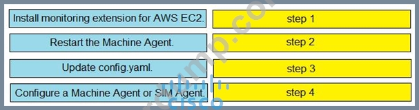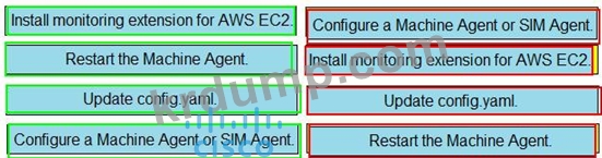 AppDynamics가 Amazon Web Services에서 EC2 인스턴스를 모니터링할 수 있도록 왼쪽에서 오른쪽의 올바른 순서로 단계를 끌어다 놓습니다.