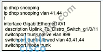조직에서 네트워크 내에서 DHCP 스누핑을 사용하고 있습니다. 새 스위치의 VLAN 41 사용자가 IP 주소를 얻지 못한다고 불평합니다. 사용자에게 네트워크 연결을 제공하기 위해 스위치 인터페이스에서 구성해야 하는 명령은 무엇입니까?