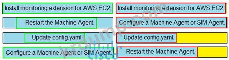 AppDynamics가 Amazon Web Services에서 EC2 인스턴스를 모니터링할 수 있도록 왼쪽에서 오른쪽의 올바른 순서로 단계를 끌어다 놓습니다.