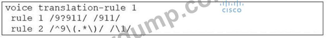 관리자는 IOS 음성 게이트웨이의 아웃바운드 통화에서 선행 9를 중지하고 시스템이 911 긴급 통화를 처리하는지 확인해야 합니다. 이 작업을 수행하려면 어떤 구성이 필요합니까?