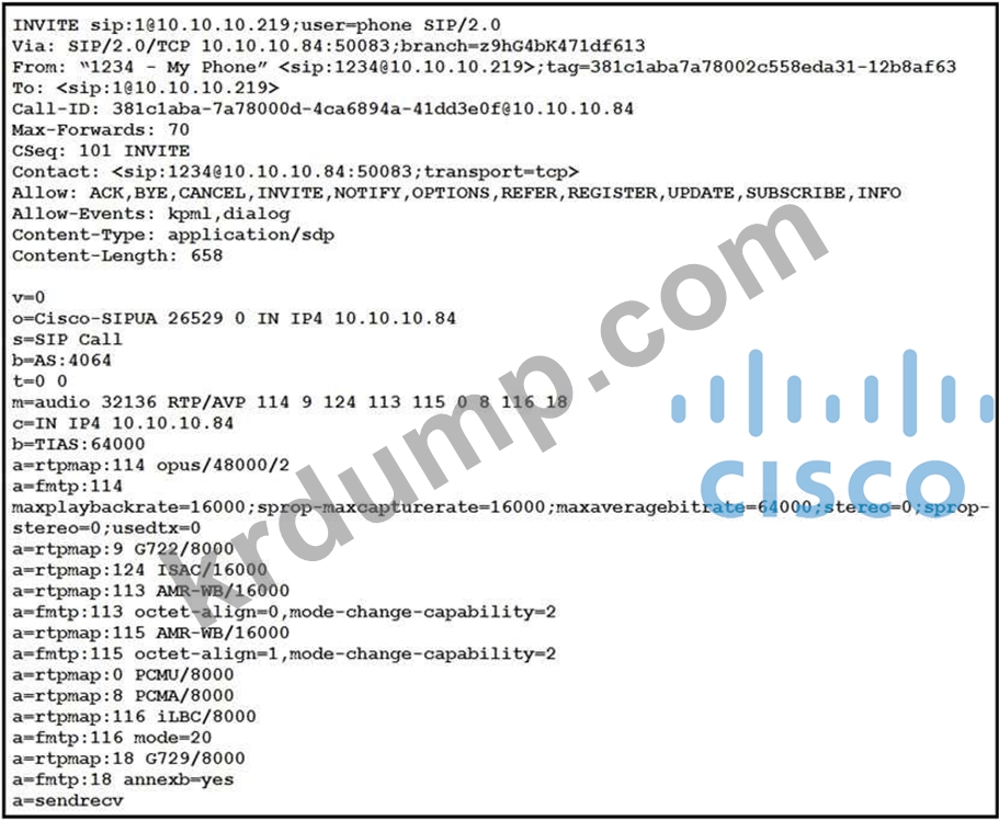 전시를 참고하세요. UC 관리자가 이 SIP INVITE에 의해 협상된 DTMF 문제를 해결할 때 문제를 추가로 해결하기 위해 다음으로 조사해야 하는 두 가지 메시지는 무엇입니까? (2개를 선택하세요.)