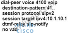 관리자가 Cisco Unity Express 모듈을 Cisco UCME 시스템에 통합하고 있습니다. Cisco Unity Express 파일럿 번호로 테스트 호출을 걸었지만 관리자는 통화 중 신호를 받습니다. 다이얼 피어는 다음과 같이 구성됩니다.