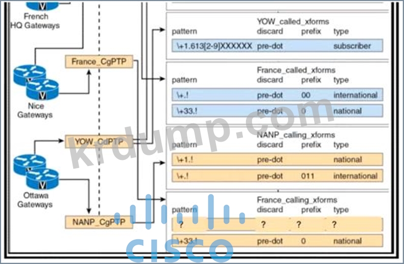 Nice 게이트웨이를 통해 전송된 +1 613 555 1234의 전화는 번호 유형이 "국제"인 발신자 001 613 555 1234가 되어야 합니다. 다음 중 이 목표를 달성하는 구성은 무엇입니까?