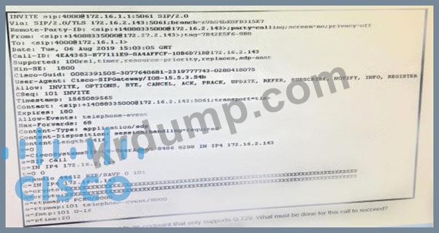 이 INVITE는 G.729만 지원하는 엔드포인트로 전송됩니다. 이 호출이 성공하려면 어떻게 해야 합니까?