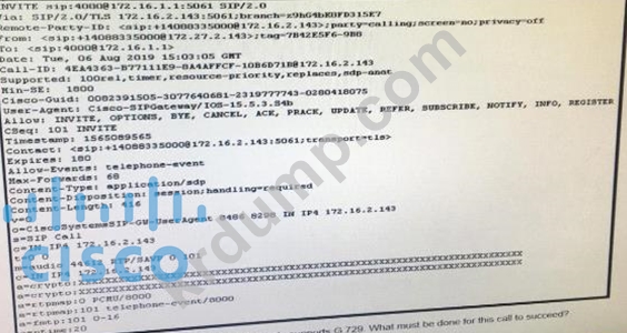 이 INVITE는 G.729만 지원하는 엔드포인트로 전송됩니다. 이 호출이 성공하려면 어떻게 해야 합니까?