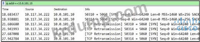 전시를 참고하세요. 관리자가 Cisco UCM에 SIP 전화를 등록하려고 하지만 등록에 실패합니다. SIP 전화기의 IP 주소는 10.117.34 222이고 Cisco UCM의 IP 1 주소는 10.0.101.10입니다. SIP 전화에서 Cisco UCM으로의 Ping이 성공했습니다.