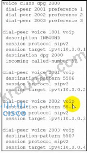 디렉터리 번호가 4401인 Cisco UCM 사용자가 5507로 전화를 걸고 통화가 Cisco Unified Border Element로 라우팅됩니다. 어떤 IP 주소로 통화가 전송됩니까?