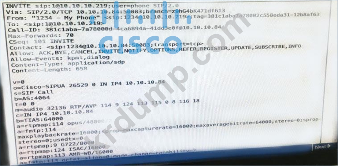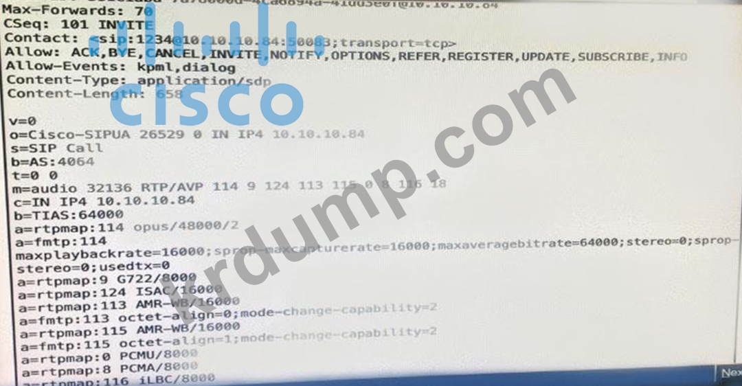 UC 관리자가 이 SIP INVITE에서 협상한 DTMF의 문제를 해결할 때 문제를 추가로 해결하기 위해 다음으로 검사해야 하는 두 메시지는 무엇입니까? (두 가지를 선택하세요.)