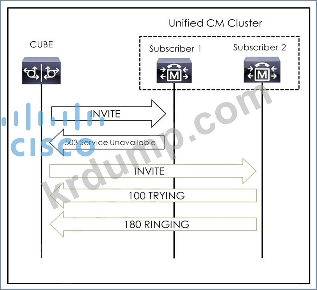 Cisco Unified Border Element가 가입자 1과 통화를 설정하려고 시도하지만 통화가 실패합니다. 그런 다음 Cisco Unified Border Element는 가입자 2와 동일한 통화를 재시도하고 통화는 정상적으로 진행됩니다. 어떤 조치로 문제가 해결됩니까?