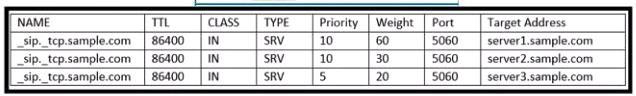 관리자는 서버 1 .sample.com이 항상 세 서버에서 먼저 연결되도록 SRV 레코드를 수정해야 합니다. 엔지니어는 이 문제를 해결하기 위해 어떤 솔루션을 적용해야 합니까?